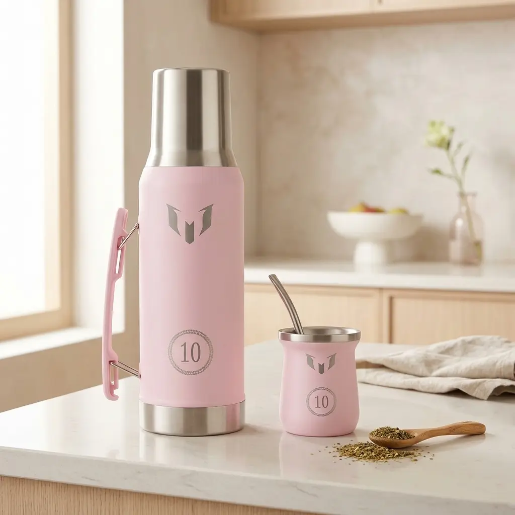 Mate: Diseñado para conservar el sabor de la yerba por más tiempo, acompañado de una bombilla de acero de fácil limpieza.
